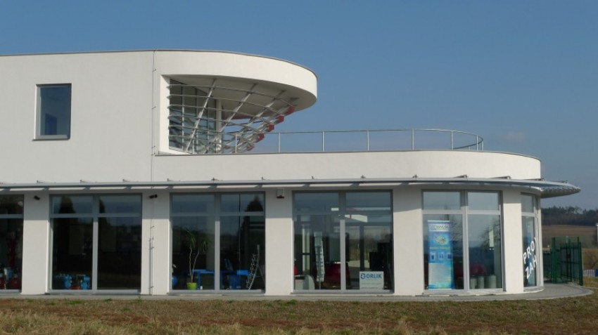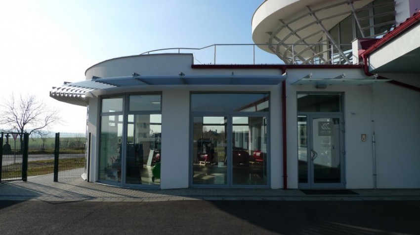 Dodávka hliníkových oken a dveří v systému MB70-HI a plastových oken GEALAN v systému 8000 s povrchovou upravou z tvrzeného plastu (PMMA) .