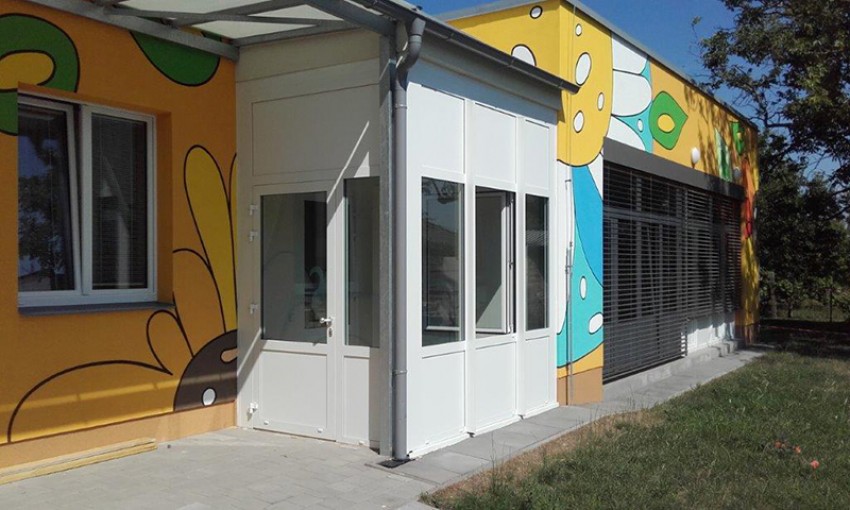 Zakázka na hliníkové dveře systém MB 86 s panikovým kováním byla realizována v roce 2016 v MŠ Rajhradice.