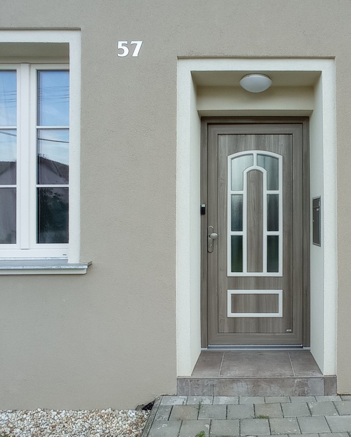 Plastová okna a dveře Gealan S9000, dveře AnTeak, barva RAL 9001