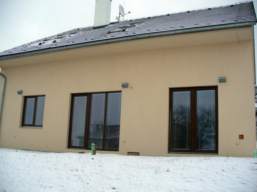Kompletní dodávka plastových oken a vchodových dveří. Provedení dekor dřeva.